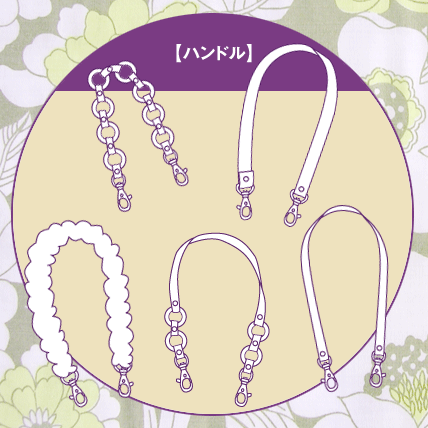 ハンドル一つでバッグの表情が変わります。バッグが一つでもハンドルをいくつか持ってればぐぐっと楽しさ広がります!