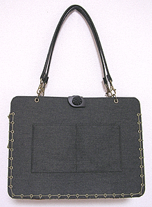 ◆本体の形:B4ヨコ ◆マチ:Lサイズ・幅12cm ◆組立コード:黄色/黒 ◆組み方:クロス ◆ハンドル:スペイン製PUレザー/黒/RING II/RING I/45cm各1本
