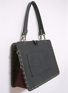 ◆本体の形:A4タテ ◆マチ:Mサイズ・幅12cm ◆組立コード:カーキ ◆組み方:クロス/和綴じ ◆ハンドル:エナメル×デニム黒/45cm×2