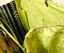 最後に決定した内側の「小鳥柄」は、小さく折り畳んだハギレの中から発掘されたのですが、と〜っても気に入ってくださり、それまで「組み替えすることはないから…」とおっしゃてたのに、「この柄、外に出したくなってきた〜。組み替えするかも〜」と♪