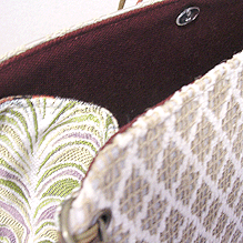 マチ外側はとても珍しいトルコのゴブラン。内側はヴィンテージの日本製ゴブラン。外は外、内は内でトーンを合わせて上品な仕上がりになりました。