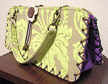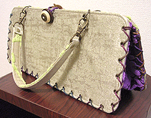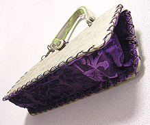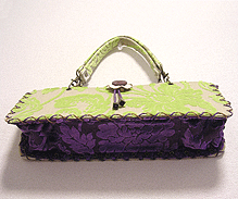 ◆本体の形:ピアニカ ◆マチ:Sサイズ・幅8cm ◆組立コード:キャラメルブラウン/グラデーション・紫系 ◆組み方:クロス ◆ハンドル:本体外側シャンパンゴールド×本体外側イタリー製ビロード風/2.0×30cm×2