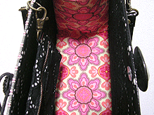 黒ベースといえども、本体の真っ黒に見える生地にもお花の刺繍がほどこされているので、お花がない部分は内側の