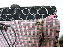 CI様第一作目は実用を兼ねたカタチにされました。まずは好きなモチーフ(ハート)と好きな色(ピンク)で行く!と決められ早かったですねぇ。実は偶然同じカタチ同じ生地で制作した本体パーツが手元にあり、それで一気にイメージングできたそうです☆