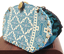 ◆本体の形:大福 ◆マチ:Sサイズ・幅12cm ◆組立コード:ターコイズブルー×ベージュ/ネイビー×こげ茶 ◆組み方:クロス ◆ハンドル:お手持ちの物をご利用