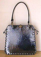 本体:台形 マチ:Mサイズ・幅10cm ハンドル:エナメル×エナメル/2×45cm 組立コード:黒 組み方:クロス