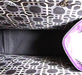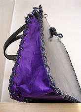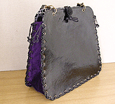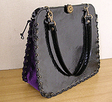 黒×紫×グレー×金の4色のみで構成された潔いバッグ。