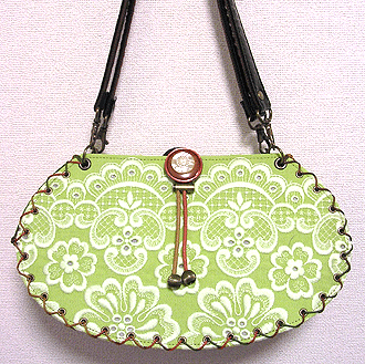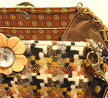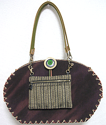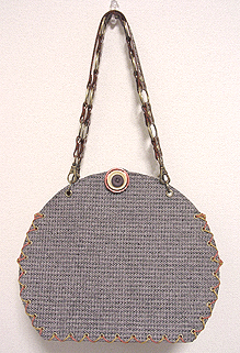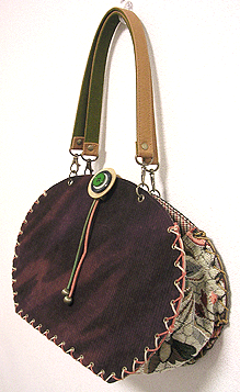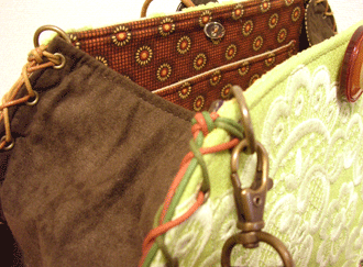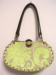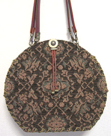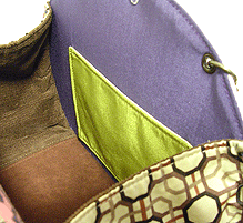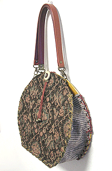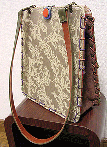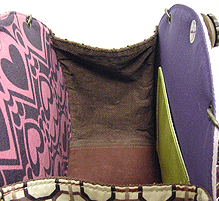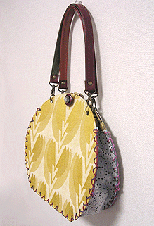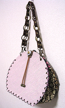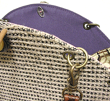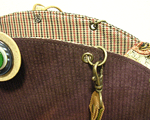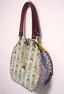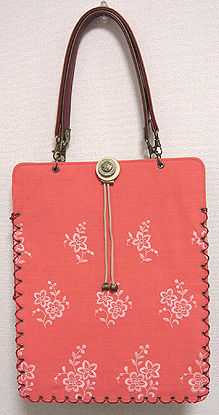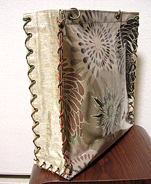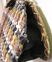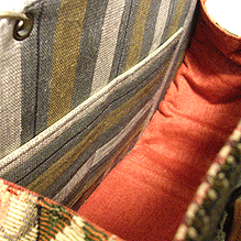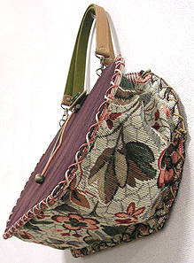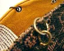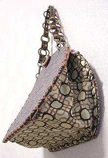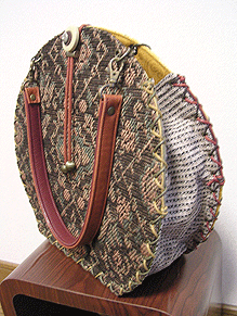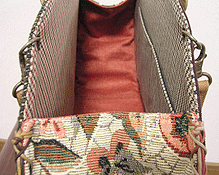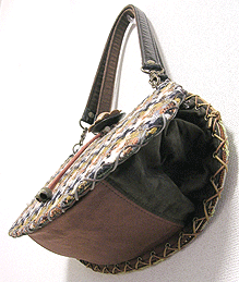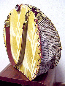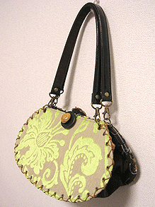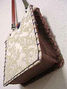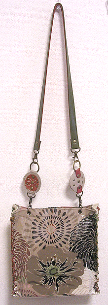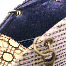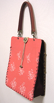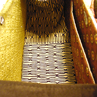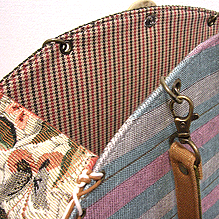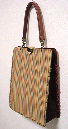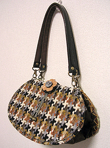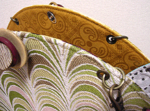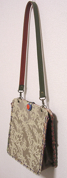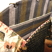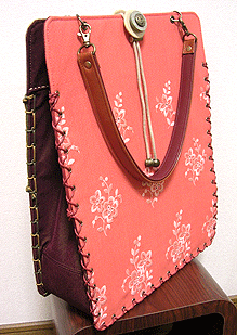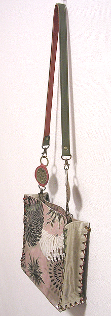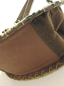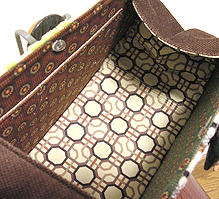 に付いていたマチは茶色の無地の面を外側にしていましたが、第六作目では柄の面を外側にしました。この柄に合わせて本体その他のパーツを選び、またちがったイメージのバッグが誕生しました☆