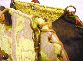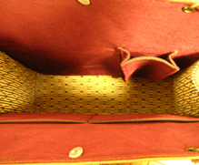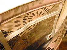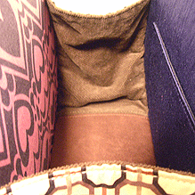 ブラウン面の向こう側に見える既存面内側の生地との相性、また、既存面(黄色い面)と新調したマチ、内側の相性もバッチリ☆