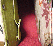 従って、こげ茶の面を春らしいゴブランに、マチを裏返してオリーブグリーンを外側に組み替えとなりました♪