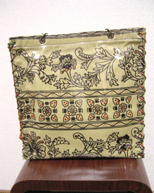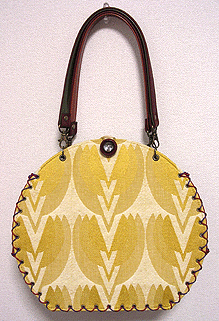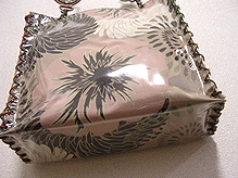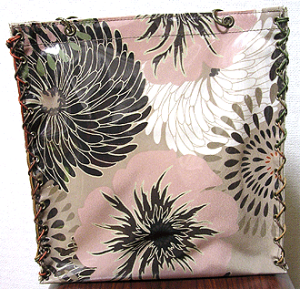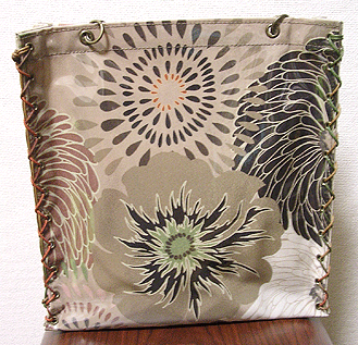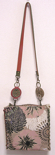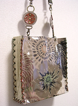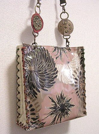 第五作目は初のビニールサンド・バッグ。和のようなオリエンタルな柄に、マチはマスタードとグレーを合わせて。