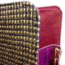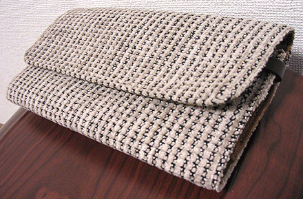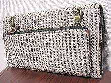 2013年11月デビューした【wallet collection(旧称)-着せ替え財布-】。早速のオーダーは【bag collection(旧称) 第四作目】でかなりのお気に入り・シックでエレガントなイタリア製生地とお揃いで♪しかも総柄です。豪華ですねぇ〜。カバー内側の生地がこれまた渋い!
