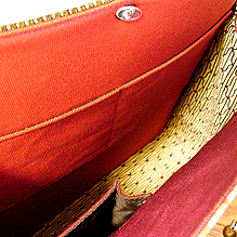 第四作目のマチ外側、第七作目の本体外側と同じイタリア製の生地をやはり総柄で。バッグに使用した生地をどれか使っておけば、どのバッグともお揃い感満載でお持ちになっていただけます。ちょっと贅沢且つお洒落な気分になれるのがこの【着せ替え財布】のかしこいところ♪
