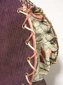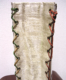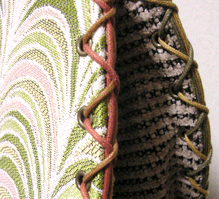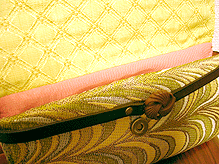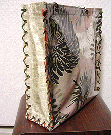 第二作目は当初プライベートでお使いの予定でしたので、華やかなレトロピンクのレースの生地と、写真の縦縞でオーダーされていました。