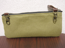 というわけで「Hanging Pocket」をオーダー。渋い。第六作目の「どら」にぶらさげるとご覧の通り。男性でも持てそうな雰囲気です。渋い・笑。