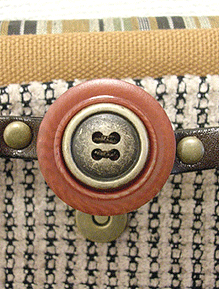 秋冬物の生地で本体一枚とマチを新調、組み替えました。ボタンも生地に合わせて、シック&エレガントに。