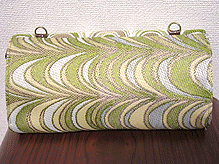 本体内側に挟んだ布はスカーフのような風呂敷のような風合いの、和のような洋のような斬新且つ大胆な柄。しかもマチにはラメ入りのゴールドの生地。NS様も最近はDOAに触発されてかキラキラ&華やか好みに変貌しつつ・笑。でもとってもよくお似合いなので、元々こういう一面も持ち合わせていらっしゃったんでしょうね♪