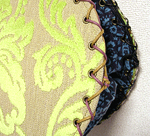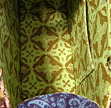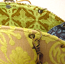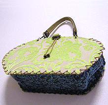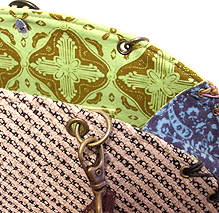 MB様の第一作目は大福ちゃん♪グリーンを基調に、シックで爽やかなバッグに仕上がりました。本体外側両面共イタリー製の生地で、ハンドルには本革をご希望になったので高級感も漂っています・笑。無地っぽく見える面の生地をバイアス取りにしたのでより個性的になりました。内側の生地はインドネシアのバティックで統一。