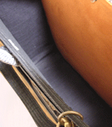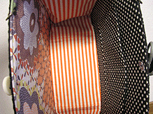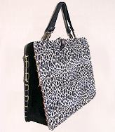 今回のYI様は、1作目のB4ヨコを変身させるオーダー。まずはヒョウ柄1面を追加してお取り替え、もう片面とマチは内側を外に組み替え、ついでにコードもお色直し。ヒョウの内側は元気なオレンジ。また、Hanging Pocket のLサイズをモーニングの生地面にぶらさげて、少し表情をプラス。イメージチェンジは大成功でした☆