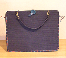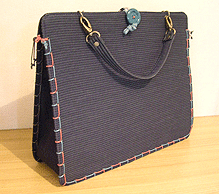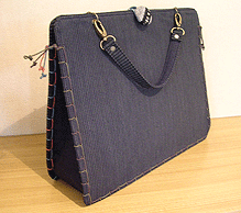 本体:B4ヨコ マチ:Lサイズ・幅10cm ハンドル:本体共生地/2.0×30cm 組立コード:スモーキーブルー×サーモンピンク/こげ茶×カーキ 組み方:和綴じ ボタン:YI様お手持ちのボタン(ブルー)/G・House