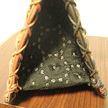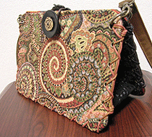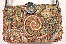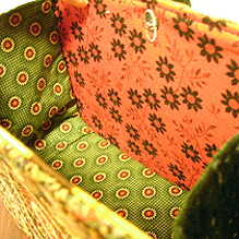 アトリエサロンで生地をご覧になるまではエナメルで小さなハートにしようと思われていたそうですが、生地を見てガラリと気が変わり…笑!わからないものですね♪結局6面すべて違う生地になりましたが、エレガント・キュートなバッグになりました☆