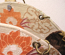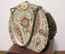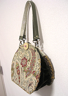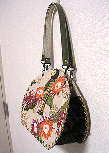 オレンジのお花柄のコードをほどいて内側のゴブランを外側にして組み替えました。コードもまだきれいだったのでそのまま使用。ボタンもそのままですがピッタリよくお似合い♪春夏バッグから秋冬バッグに変身完了です^^