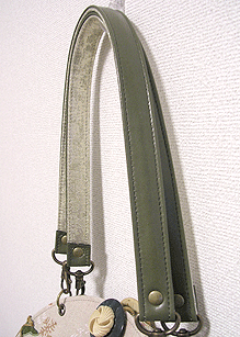 ボタンは既存のベージュの下に、昭和レトロなグリーンのボタンを重ねて少し豪華に。ハンドルもリアルレザーを使ってやはり少し豪華になりました。