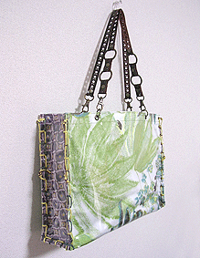 第二作目として購入されたサンプル・バッグ【B4ヨコ/L】の本体を【A4ヨコ/M】にくり抜きリフォーム&Mサイズのマチとハンドルを新規オーダー。