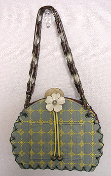 ◆本体の形:どら ◆マチ:SSサイズ・幅8cm ◆組立コード:フォレストグリーン/パープル ◆組み方:クロス ◆ハンドル:スペイン製PUレザー/BR/RING-I-/RING-II-45cm各1本