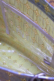 人気のトルコ・ゴブランに、MM様仕様の渋めのパープルを合わせて、スッキリしたクール・エレガントなお財布ができました。
