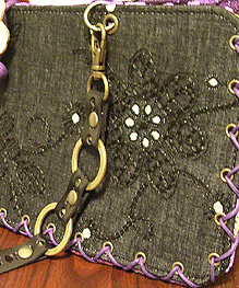 ◆本体の形:台形 ◆マチ:Sサイズ・幅10cm ◆組立コード:黒/紫 ◆組み方:和綴じ ◆ハンドル:ご自身で制作