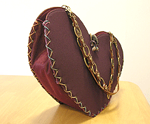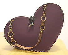 ◆本体の形:ハート ◆マチ:Sサイズ・幅10cm ◆組立コード:グラデーション茶系/グラデーション紫系 ◆組み方:クロス ◆ハンドル:スペインレザー茶/RING-I-45cm/RING-II-45cm各1本 ◆ボタン:SUUSU/DOA