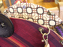 アトリエ初訪問のMS様。バッグと布たちに囲まれ・・・・・踊ってらっしゃいました・笑。言葉より身体での表現の方が得意なお方のようで…。一つ一つの説明ごとに独特の表現方法で感動(たぶん)してくださるので調子に乗りそうになりましたよ・苦笑。