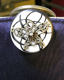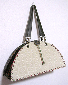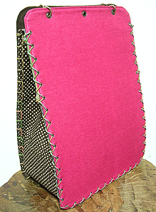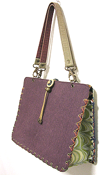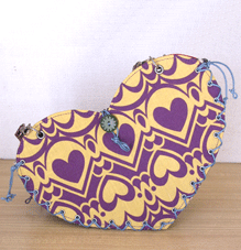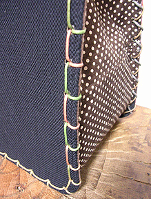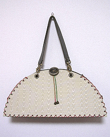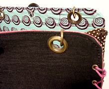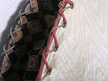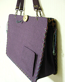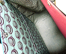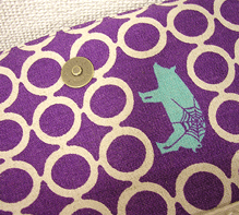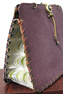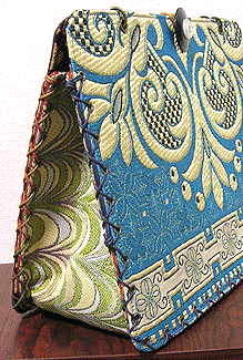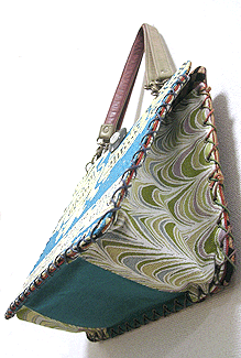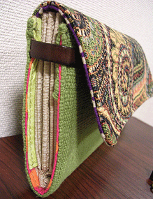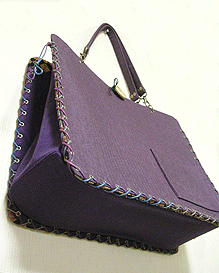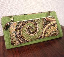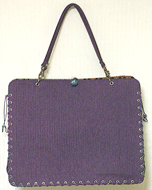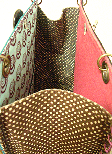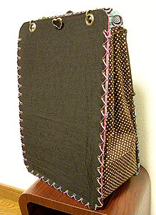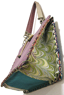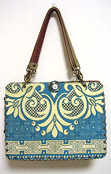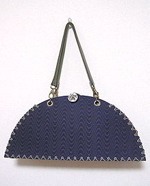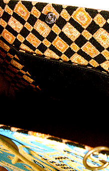 マチに使用された柄といい、第一作目の内側の生地といい、どうもウィーン世紀末調がお好きなようで。って私も好きなのですが・笑。スモーキーブルーのコードがよい挿し色になってますね☆