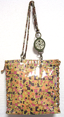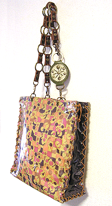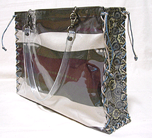 ☆この「ビニールサンド・バッグ」は、本体、マチ共に透明なビニールとビニールの間に生地を挟んで(サンドイッチ)一枚ものに仕立てています。中に挟む生地をお選びいただけます。薄い生地が向いているので、お揃いでスカーフなども♪