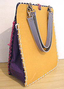 ◆本体の形:B4ヨコ ◆マチ:Lサイズ・幅12cm ◆組立コード:グラデーション紫系(両面共) ◆組み方:クロス ◆ハンドル:本体外側と同じ生地(両面共)/45cm×2