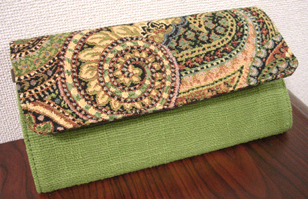 ST様の【THE WALLET】第一作目はイタリア製ゴブランとグリーンのタイ製ヘンプとの出会い。シックに見える外観とは裏腹に内側はご覧の通り。エレガントな外見だけど内側はポップでお茶目。ST様ならではのお財布になりました♪