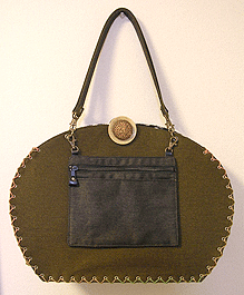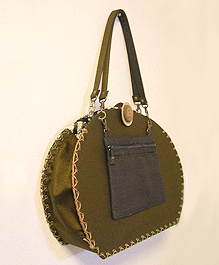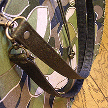 ◆本体の形:大福 ◆マチ:Lサイズ・幅10cm ◆組立コード:カーキ/グラデーション・茶系 ◆組み方:クロス ◆ハンドル:2×45cm2本/デニム ◆OPTION:Hanging Pocket/M