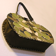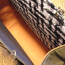 初オーダーにして一番大きな形「大福/L」をご希望に。外観はカーキ系の色でまとめ、内観はモノトーンで、と思いきや通しマチの枇杷色を挿し色に。