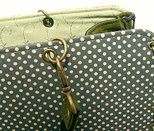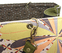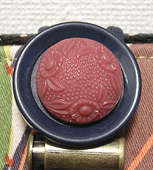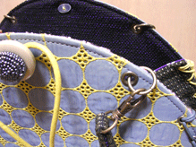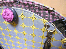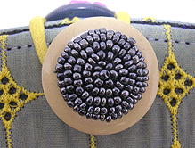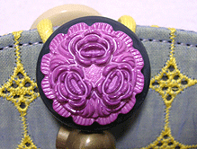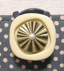 「おっ?!」と感心したのは、ボタンの色とちらりと見える内側の生地との色を合わせてらっしゃること!ピンクの生地が見える面にピンクのボタンを、ネイビーの生地が見える面にはブルーグレーに光るビーズのボタンを。むぅ〜〜〜ん、さすがです!!
