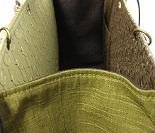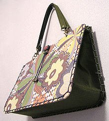 ◆本体の形:A4ヨコ ◆マチ:Lサイズ・幅12cm ◆組立コード:ネイビー/グレー ◆組み方:和綴じ ◆ハンドル:マチの外側のグリーン×マチ内側ネイビーの生地/2×45cm×2本