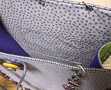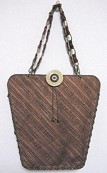 ◆本体の形:植木鉢 ◆マチ:Mサイズ・幅10cm ◆組立コード:焦げ茶(ブロンズ面)/キャメル×ネイビー ◆組み方:クロス ◆ハンドル:スペイン製PUレザー/茶/RING-I-45cm×2