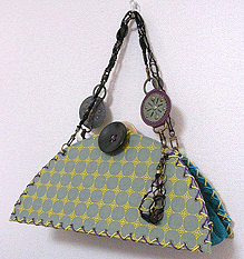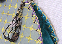 ◆本体の形:ドーム ◆マチ:Mサイズ・幅12cm ◆組立コード:ターコイズブルー×イエロー/パープル×イエロー ◆組み方:クロス ◆ハンドル:G・house ◆OPTION:タダモノではないバッグチャーム×2