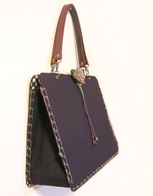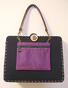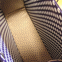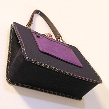 ◆本体の形:B4ヨコ ◆マチ:Lサイズ・幅12cm ◆組立コード:グラデーション・パープル系(両面共) ◆組み方:和綴じ ◆ハンドル:2cm×45cm2本/本革 ◆OPTION:Hanging Pocket/M