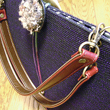 結果、ボタン(G・houseさんの手作りボタンがココナッツボタンに乗っかっている)でかなりハジケつつも、ハンドルをレザーにされたので、シンプルでカチッと感を醸し出し、とっても素敵なバッグになりました◎