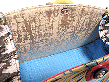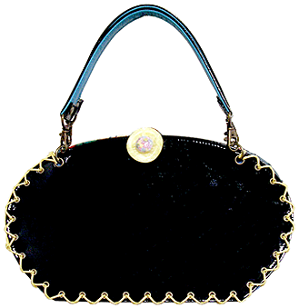 ◆本体の形:大福 ◆マチ:Sサイズ・幅12cm ◆組立コード:フォレストグリーン/イエロー ◆組み方:クロス ◆ハンドル:エナメル×本革ターコイズ/2×38cm×2本